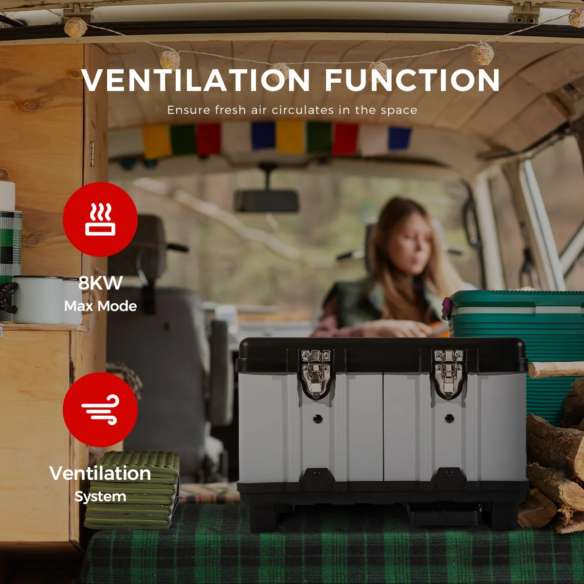 Ventilation mode: The device includes a ventilation feature, which allows air to circulate without using the heating function. This option is especially useful on hot days and also helps prevent moisture build-up. The property is perfect for motorhomes and caravans.